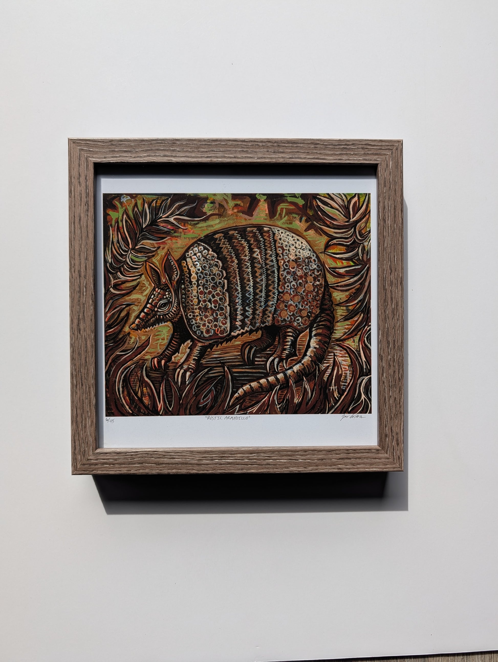 The newest painting from ATX Artist... Rustic Armadillo! A beautiful and classic original acrylic on canvas painting, this large scale art piece will be a show stopper in your home or office!